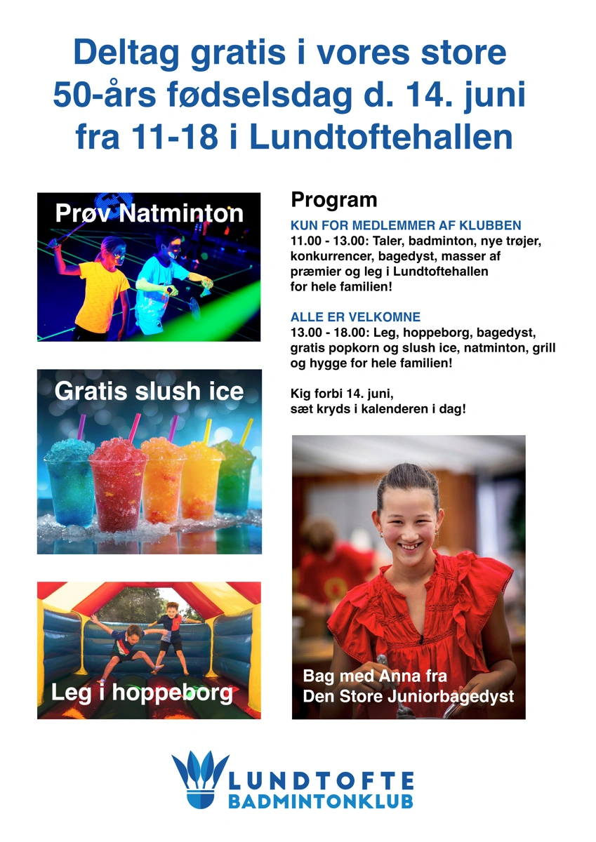 Lørdag den 14. juni markerer vi at det er 50 år siden at Lundtofte Badmintonklub blev stiftet.